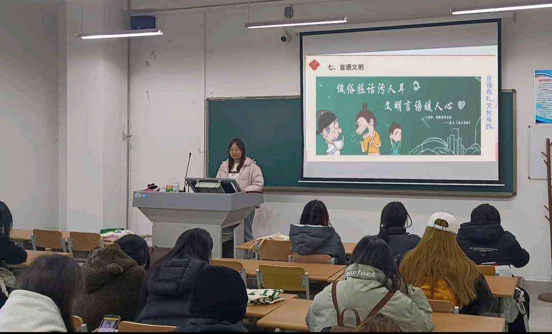 活动伊始,团支部书记阐述了提高文明素养在同学们成长历程中所发挥的关键作用,从学习、起居、上网、考试、举止等多个方面进行讲解,结合日常生活中的正反实例,展现了不同场景下的文明行为规范。并且激励同学们把文明礼仪融入到生活当中,在实践中强化自身的道德素养。