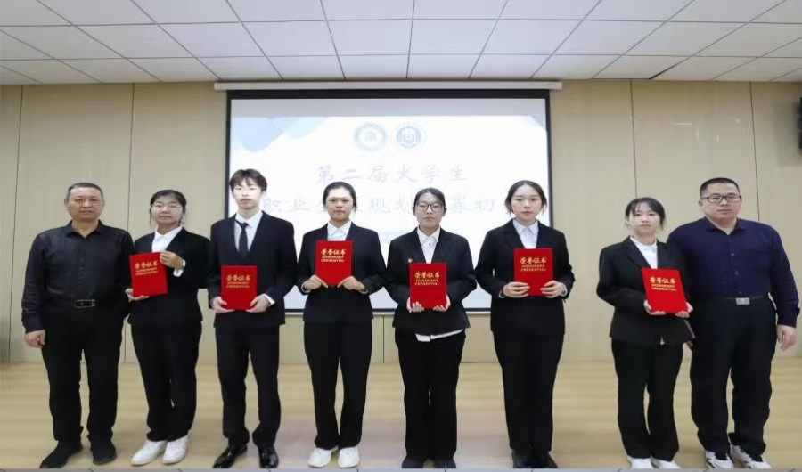 本次大赛分为成长和就业两个赛道,涵盖开场、选手展示与答辩、评委打分、颁奖、评委总结五个环节。参赛选手通过主题陈述的方式,在赛场上向评委与观众生动地呈现了个人的职业蓝图。各位评委结合实际,在职业初心、个人规划、就业前景等方面进行互动式指导,激发选手和现场观众的深刻思考。经过激烈角逐,评选出一二三等奖,由评委老师为参赛选手颁发荣誉证书。