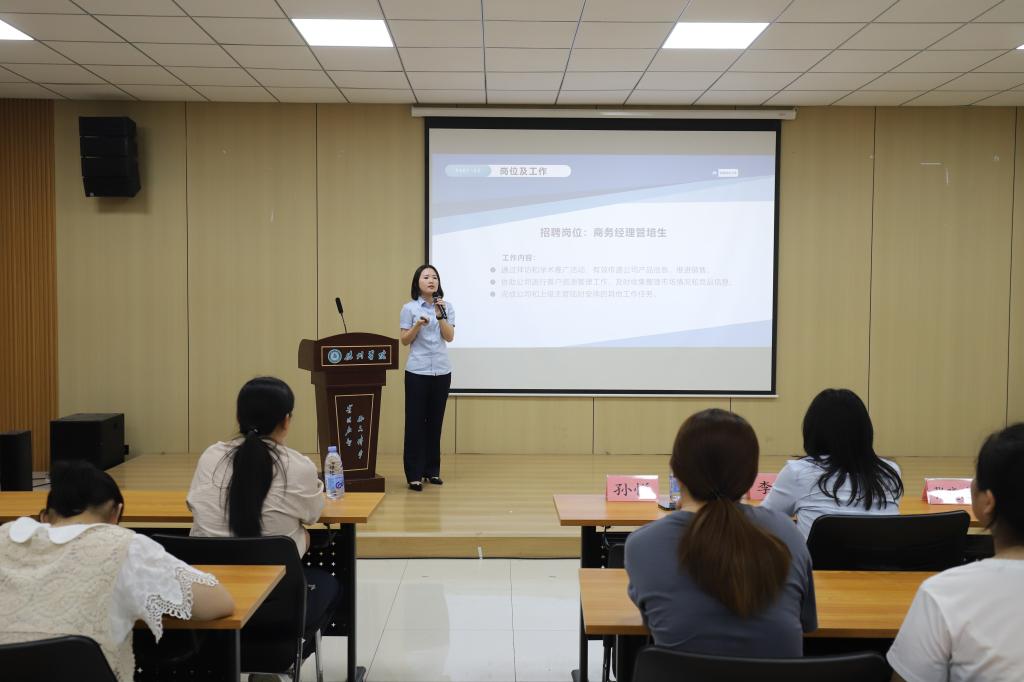 宣讲会上,青岛健行医疗器械有限责任公司人事经理孙悦详细介绍了企业的发展历程、招聘岗位及要求、薪酬福利等,鼓励学生们积极投递简历。在交流互动环节,同学们就自己关心的问题,如实习机会、职业发展路径等,与负责人进行了积极交流。孙经理耐心解答每一个问题,并结合自身经验,为同学们提供了宝贵的职业规划建议。