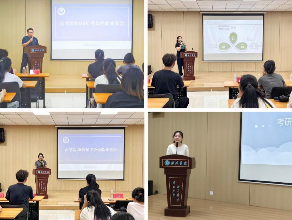 分享会上,刘书记围绕考研、考公考编及就业等问题,进行了深度剖析与经验分享。他强调考研方面,要重视信息差,审慎抉择方向;考公考编方面,鼓励同学们积极尝试,避免盲目选择;就业层面,指出商科生要抓住机遇早就业快发展,为学子提供清晰职业成长路径。