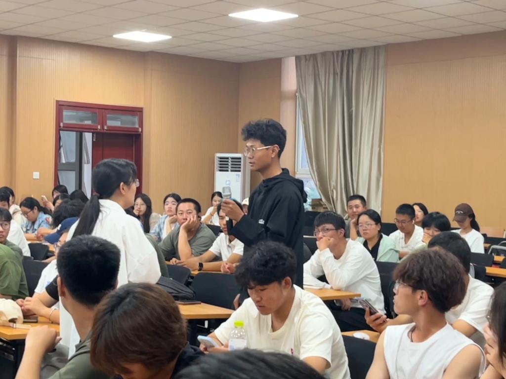 针对大学四年的成长路径,张老师提出阶段性规划建议。详细介绍了学院的全方位就业支持体系,包括人人爱人人爽官网与公众号的常态化就业信息更新、名企校园宣讲会、考公考研专项指导讲座以及优秀校友经验分享会等,为新生提供了清晰的资源获取指南。讲座最后设置互动答疑环节,现场气氛活跃。