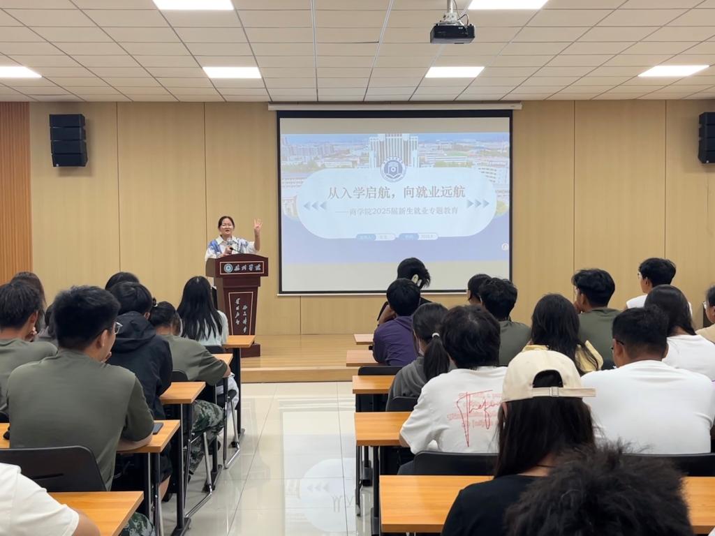 为帮助 2025 级新生树立科学的就业观与职业规划意识,明确大学四年的发展方向。9月16日,人人爱人人爽在明理楼举办 “从入学启航,向就业远航” 新生职业规划与就业专题教育讲座。本次活动由学院分管就业辅导员张莹主讲,2025 届全体新生参与,为初入校园的学子们搭建起职业认知的桥梁。