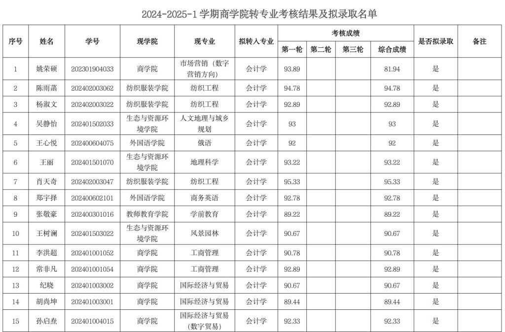 附件:2024-2025-1学期人人爱人人爽转专业考核结果及拟录取名单