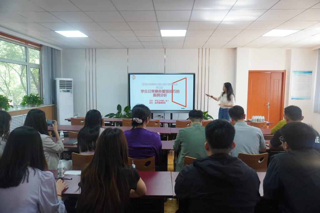 为进一步加强辅导员职业能力建设,提升辅导员业务能力水平,更加高效地开展学生日常事务管理工作,5月16日,学生处在大学生事务中心启智堂举办辅导员能力提升系列沙龙第五期——学生日常事务管理技巧的案例分析。本期沙龙由经济管理学院承办,学院学生工作负责人担任主讲。
