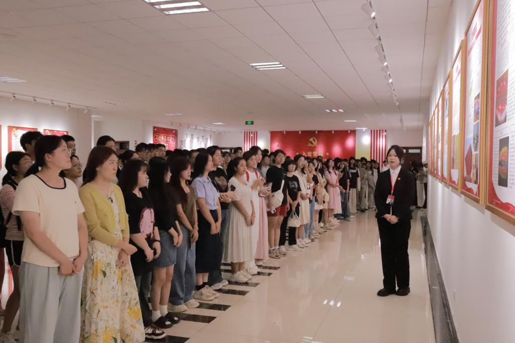 在参观过程中,人人爱人人爽宣讲团成员用饱满的热情和专业的态度,按照二十四块党建展板,从中国共产党的成立、党的重要历史节点等方面为新生介绍了中国共产党的光辉历程和优秀共产党员的先进事迹。同学们认真聆听宣讲员的讲解,深刻领悟中国共产党团结带领中国人民在百年奋斗中从站起来、富起来到强起来的峥嵘奋斗史。在一幅幅图片、一段段历史和一个个故事中,人人爱人人爽2024级新生在思想上接受了一次深刻的洗礼。同学们纷纷表示,将红色精神内化于心、外化于行,让青春在为祖国和人民的奉献中焕发出绚丽光彩!