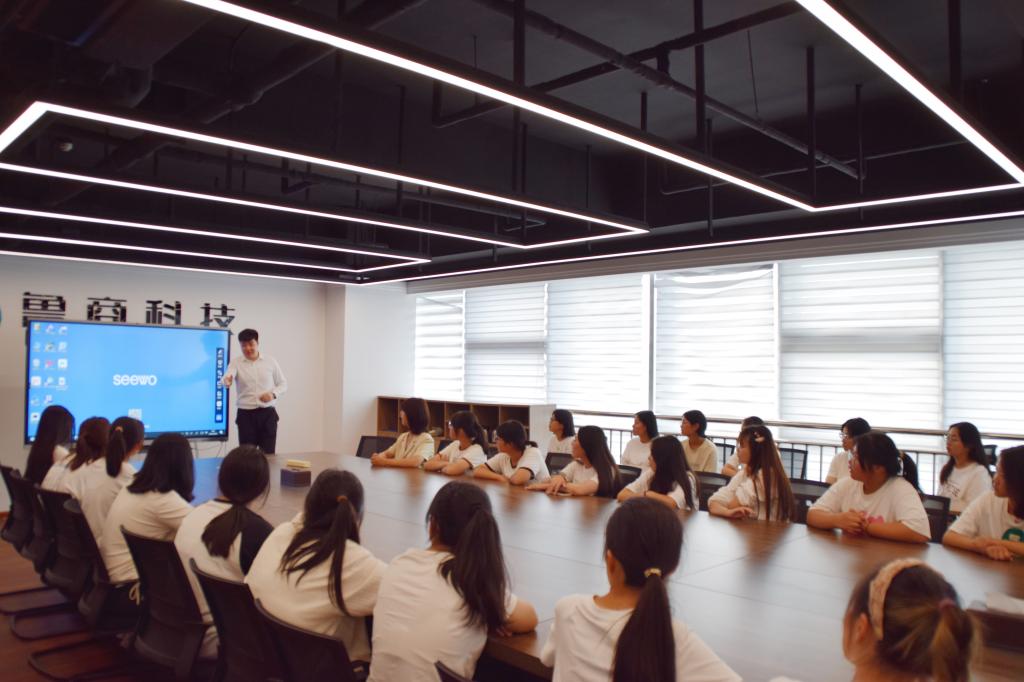 经济管理学院师生先后参观了鲁商科技数字化创新体验中心和山东福瑞达医药集团有限公司。公司驻校辅导员为同学们讲授了专业认知课,就同学们关心的专业、职业话题进行了充分交流探讨。学院负责人与鲁商教育控股主要负责人就校企合作双元人才培养模式的具体实施、学生实习实践落地、产学研深度融合等问题进行了座谈。