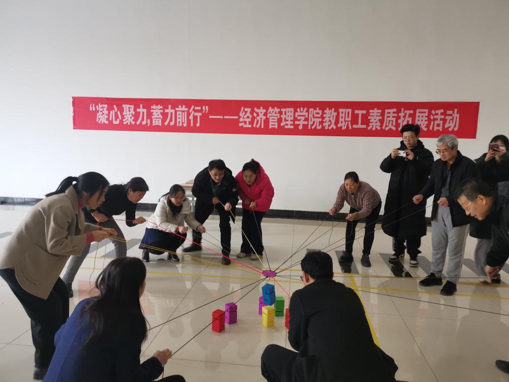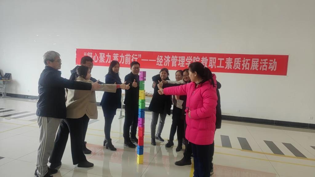 为了丰富教职工的业余文化生活,展示经济管理学院教职工的风采,让全体教职工在繁忙之余,释放压力,增强团队凝聚力,12月12日,德州学院经济管理学院组织教职工开展“凝心聚力,蓄力前行”教职工素质拓展活动。