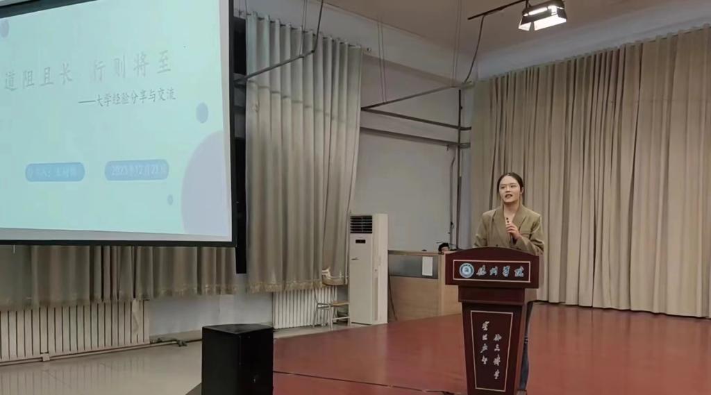 为充分发挥优秀校友的榜样引领作用,激发学生做好学业职业规划的意识,推动学院学风建设工作提质增效,12月21日晚,经济管理学院在求实楼0409报告厅举办“寻榜样之光,汲奋进力量”优秀校友报告会。活动邀请经济管理学院2022届会计学优秀毕业生,现天津财经大学会计学院硕士研究生王树锦作专题报告。各年级学生代表共350余人参加活动。