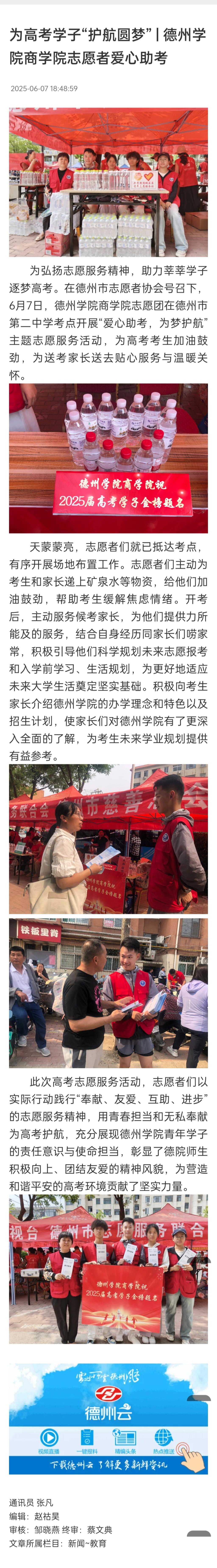 德州云:为高考学子“护航圆梦”|德州学院人人爱人人爽志愿者爱心助考