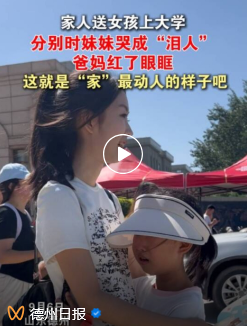 德州日报:9月6日,德州学院开学日,来自河北唐山的新生范禹孜一家即将离开德州,妹妹紧拉着姐姐的手哭成泪人,父母站在一旁也红了眼眶。
