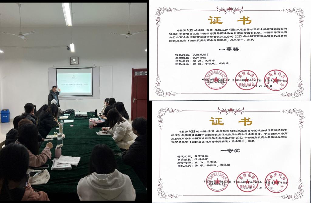 国际经济与贸易专业高度重视大学生科技文化竞赛工作。2021-2024学年,国际经济与贸易专业本科生170余人参与了多项大学生创新创业科技文化竞赛,获得国家级、省级奖项多项。专业学生参与各类竞赛比率达到75%以上。通过参加科技文化竞赛,学生能力提升与教师的科研、教研及教学高度融合,学生干中学、教师干中较,极大地促进了教学相长机制的培育。