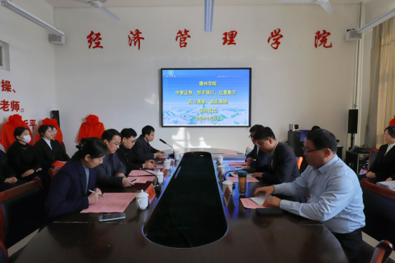 德州学院党委委员、副校长单振涛,中泰证券德州分公司总经理李龙升,恒丰银行机构金融部教科文卫室总经理、德州分行党总支委员副行长张存,远景(山东)数字技术有限公司总经理刘培强,及经济管理学院相关负责人出席仪式。