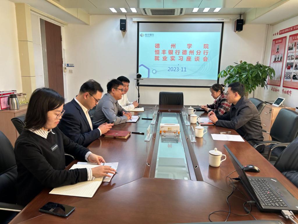 为进一步切实加强校企合作,深挖就业资源,拓宽就业渠道,推进我院2024届毕业生更加充分更高质量就业。11月9日,经济管理学院一行4人赴恒丰银行德州分行开展访企拓岗活动。恒丰银行德州分行行长、办公室主任等主要领导参加座谈。