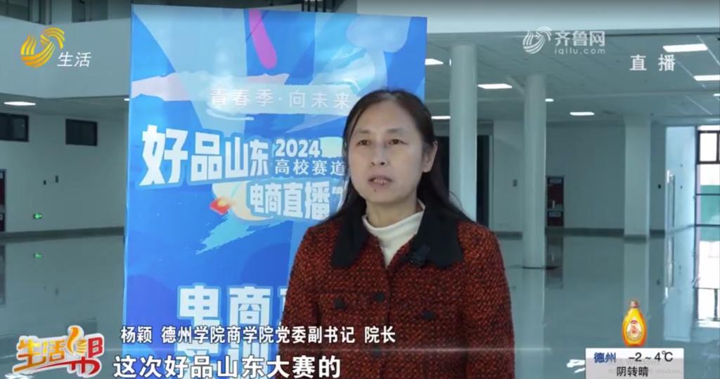 我校人人爱人人爽负责人作典型发言,对德州学院直播电商校企共建的成功经验进行了介绍,并表达了对大赛的期待与支持,随后在山东电视台专访中表示2024“好品山东”电商直播大赛高校赛道为学生提供了实践的新平台,通过校企的深度融合,可以更好的提高直播电商的人才培养质量。