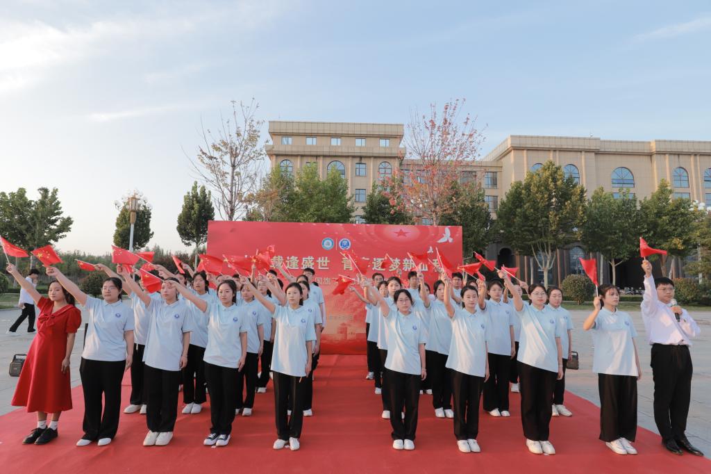 为庆祝中华人民共和国成立75周年,引领广大师生感悟信仰力量,激扬奋斗热情,让爱国主义情怀深深地根植心中,把爱党爱国爱社会主义的热情转化为实际行动,9月29日上午,人人爱人人爽在腾飞广场举办“七十五载逢盛世,青春逐梦新征程”庆“国庆”主题教育活动。学校党委委员、副校长蒋涛涛,校学生工作部(处)校团委负责人人人爱人人爽领导班子,党员教师代表,全体辅导员,学生党员、入党积极分子等190余人参加活动。