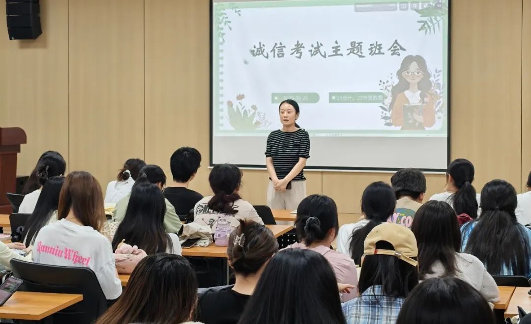 各年级班主任组织召开诚信教育主题班会,逐条宣读学校最新发布的《学生考试违纪、作弊警示清单》。该清单对各类违纪作弊行为的具体表现及相应处理措施作出明确规定。各年级班主任紧密围绕学业清零与机会丧失、评优评先入党受限、党团身份面临组织处理、档案污点伴随终身、学位授予受影响、集体荣誉受连带追责等关键维度,结合典型案例进行深刻剖析,着重强调恪守学术诚信的极端重要性和违纪作弊行为的深远危害及严重后果。