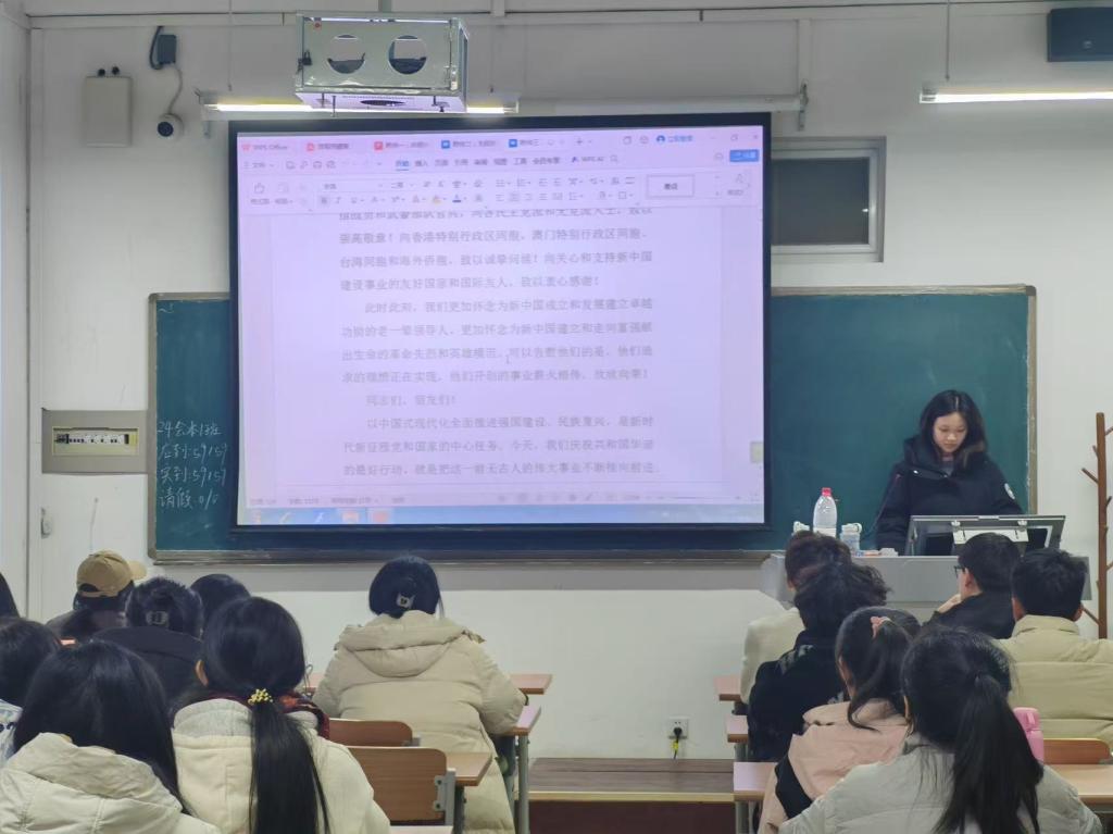 活动伊始,2024级各班团支部书记带领大家共同回顾中华人民共和国成立75周年来取得的辉煌成就,从思想建设、组织建设到作风建设等多方面展示了党如何在实践中不断自我革新、自我完善,成为领导民族复兴的中流砥柱。此外,2024级各班团支部书记号召全体同学锤炼品德修为,筑牢道德根基,成为新时代优秀中国青年。