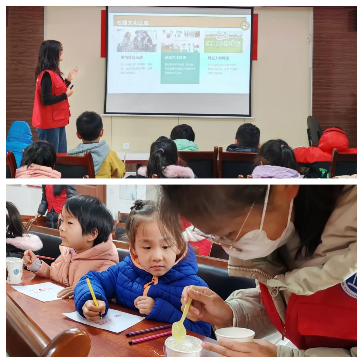 活动伊始,志愿者们借助 PPT 与孩子们分享成长经验,如定位职业规划,应对风险危机等,启发孩子们的学习兴趣。随后,大家引导孩子们绘制自己理想中的“我未来的名片”,鼓励他们说出自己的职业目标,增强自我认同。最后,志愿者和孩子们携手完成“会跳舞的盐”科学小实验,激发孩子们对化学知识的探索热情,让他们领略不同学科领域的独特魅力与挑战。在活动过程中,志愿者充分彰显榜样力量,从知识传授、职业引导到实践操作,全方位地影响并激励着参加活动的小朋友。